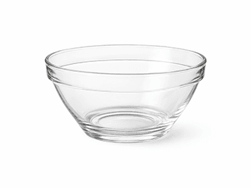Rundes Gefäss aus Chromstahl, Glas, Plastik oder Porzellan.