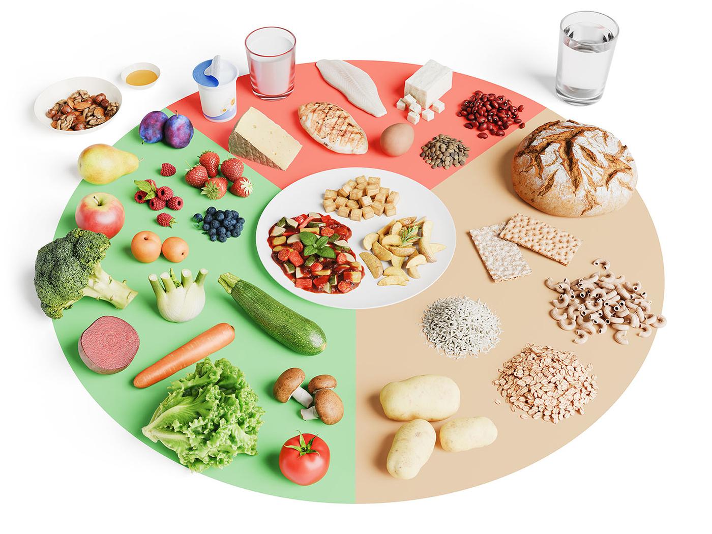 Das überarbeitete Tellermodell und eine einfache Formel sollen aufzeigen, wie durch eine vielfältige Auswahl an Lebensmitteln und angemessenen Portionengrössen eine ausgewogene Mahlzeit zusammengestellt werden kann.