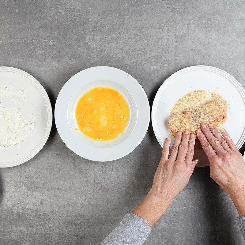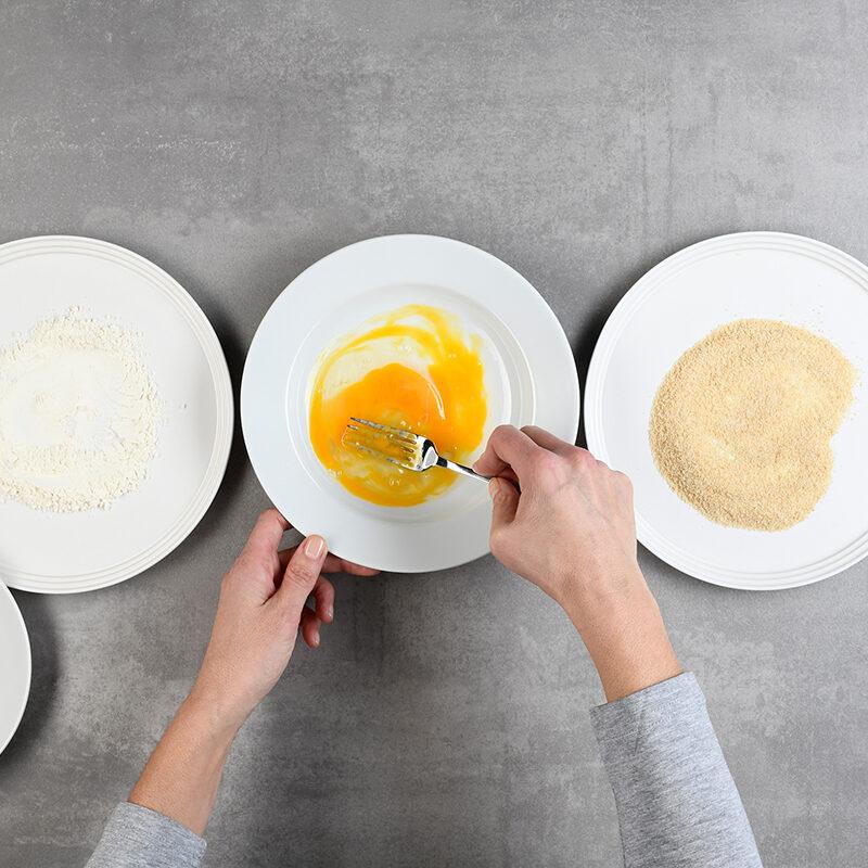 Ein perfekt paniertes Plätzli mit einer knusprigen Panade ist ein Leichtes, wenn man die Reihenfolge der sogenannten Panierstrasse einhält.