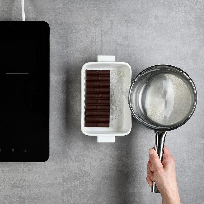 In vielen Desserts und Gebäcken wird geschmolzene Schokolade als Zutat beigegeben. Es gibt zwei verschiedene Varianten, eine Tafel Schokolade zu schmelzen.