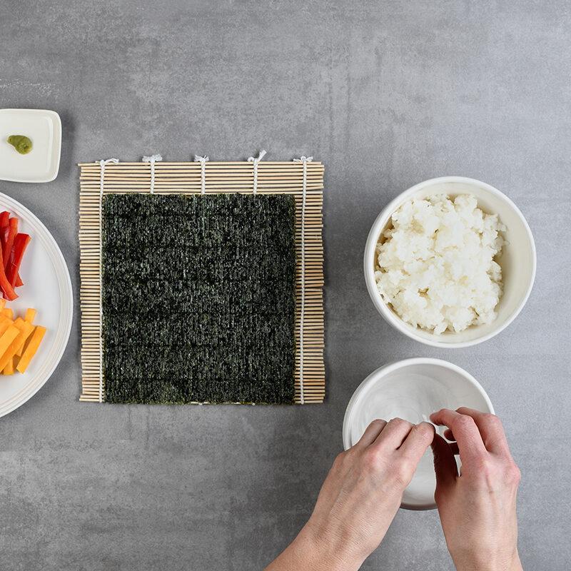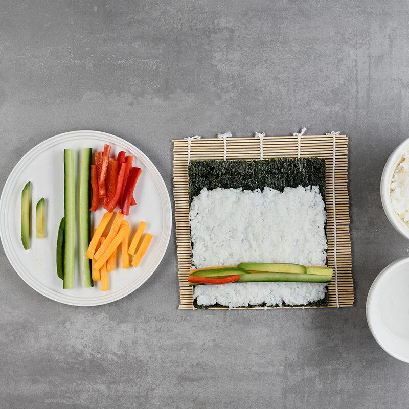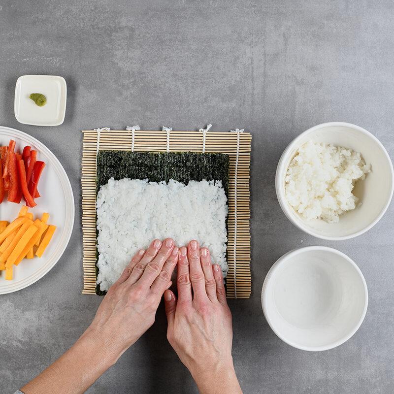 Sushirollen zu formen, erfordert ein bisschen Geschick und etwa gleich viel Geduld. Wichtig für das Gelingen sind dabei die Bambusmatten, auf denen das Sushi eingerollt wird.